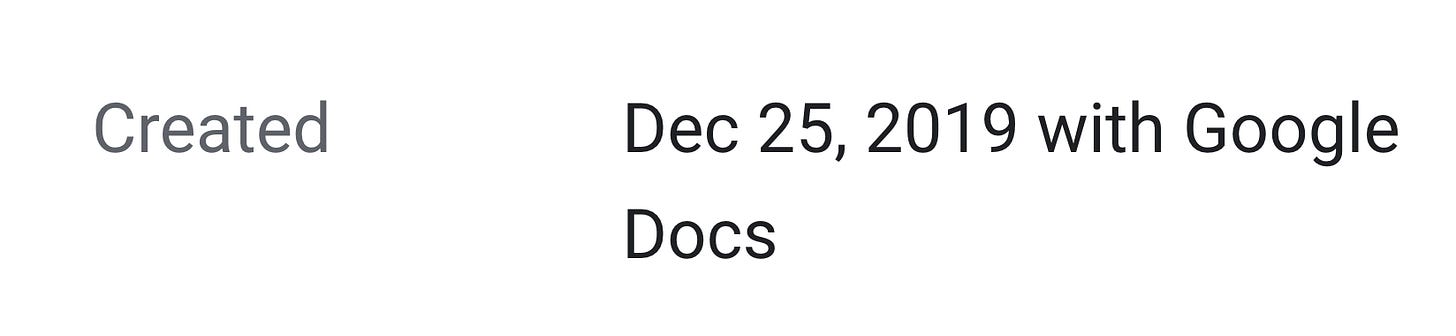 I decided to write a book, even though I’d backslid as a reader. I don’t remember Christmas night, two days after Star Wars 9, as the night I fired up a doc, but that’s what the card says.