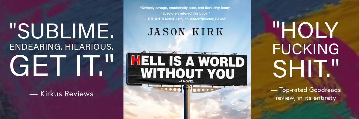 Hello, sports journalist and religion podcaster Jason Kirk here. My coming-of-age novel — Hell Is a World Without You — is good, according to a bunch of reviews cited below.