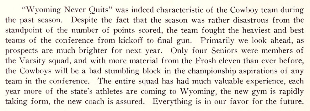There’s almost nothing on the internet about it, including newspaper archives. It appears all we know is this: Wyoming’s football team shouldn’t have agreed to a football game against their teachers, because their teachers won.